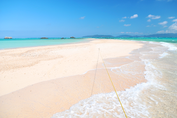 本当の名前は「浜島」と言います。 白砂で出来た島(サンゴや貝殻が砕けて砂になった砂で出来ています)で、 『幻の島』という名の通り、潮の満ち引きによって消えたり、現れたりします。 上空から見ると綺麗な三日月型。
